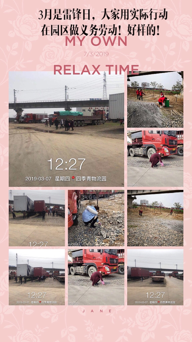三月是學(xué)雷鋒日,我們大家用實(shí)際行動在園區(qū)做義務(wù)勞動,大家利用了中午休息的時(shí)間把我們的大家園收拾的干干凈凈。我們一直堅(jiān)信你我多一份自覺,園區(qū)就多一份整潔。