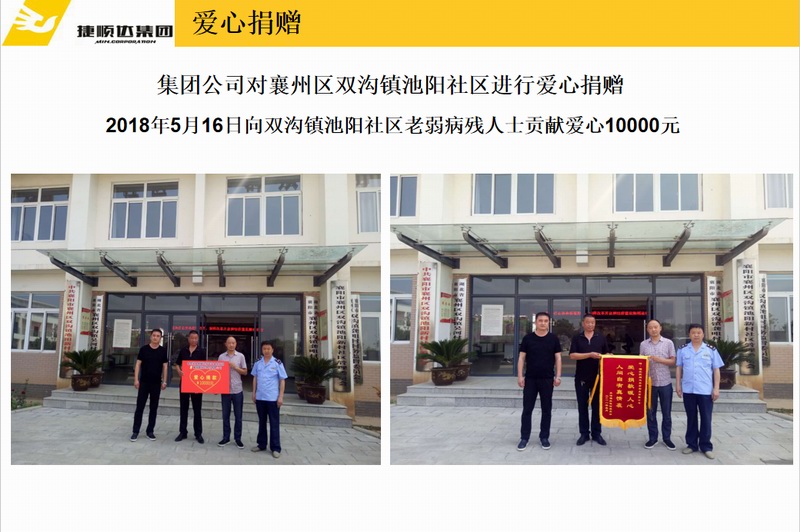 襄陽捷順達物流有限公司,企業發展13年,堅持公益事業10年。把回報社會、傳遞溫暖當成是企業責任的擔當、情懷的堅守!